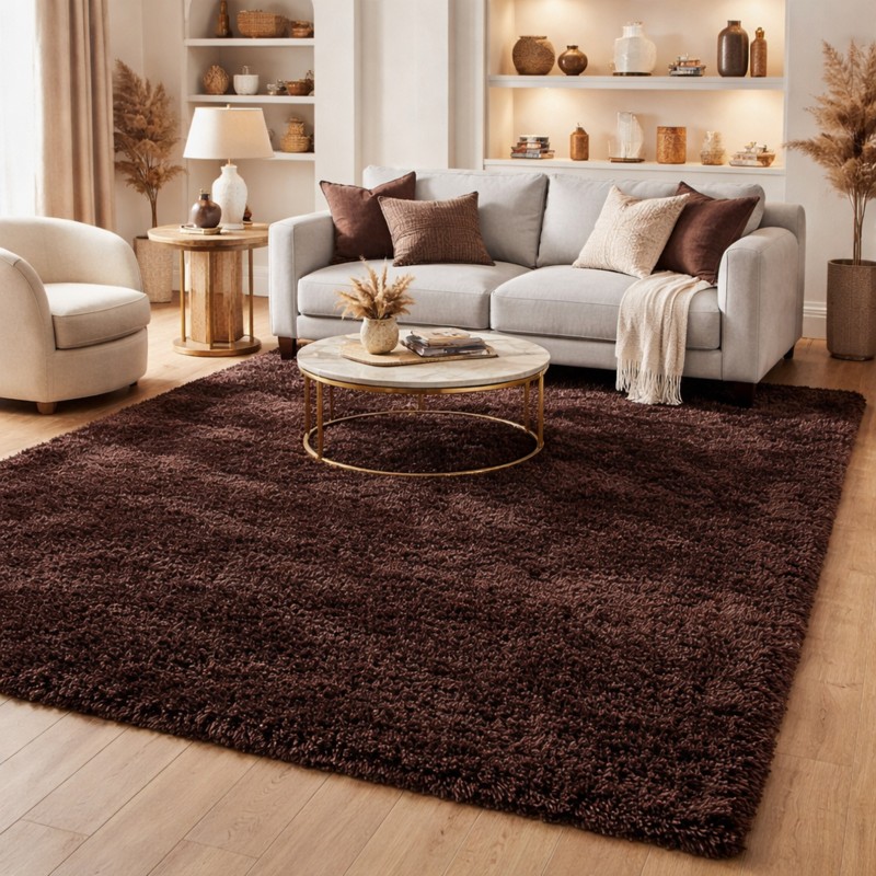 RAVELLO - Tappeto Moderno Shaggy Soft Touch Tinta Unita - 011 Cioccolato