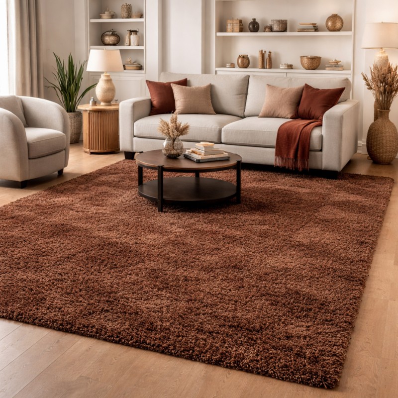 RAVELLO - Tappeto Moderno Shaggy Soft Touch Tinta Unita - 080 Marrone